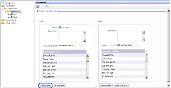 Step 11. Navigate to the Datasources folder on the left side of the screen (Figure 30). Click the Make final button and close the Data Federator Designer.