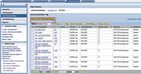 Because you have many jobs documented, you need to find the job you want to process. Click on Job Documentation in the SAP Solution Manager Work Center, and then click on Show Quick Criteria Maintenance (Figure 9).