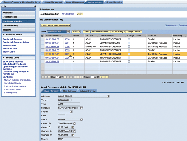 Use transaction SOLMAN_WORKCENTERS to open SAP Solution Manager Work Center (Figure 3), which provides a standardized, accessible user interface. Switch to the Job Management tab to view the common tasks related to managing jobs.