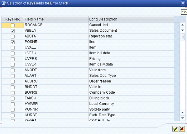 The system also uses the semantic key to set the key structure of the error log. If error handling is turned on via the option on the update screen of the DTP, the system shows the error log using the semantic key. This means that any errors are grouped and displayed based on the semantic key when looking at the error log.
