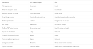 Despite major technology shifts — from SAPscript and SMARTFORMS to Adobe Forms and, more recently, S/4HANA Output Management — that underlying mindset has largely remained unchanged. Output is still designed for print, and email is still treated as little more than a delivery mechanism for attachments.