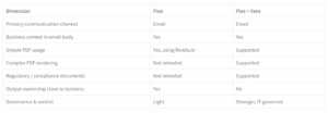 This distinction is intentional. Floe alone empowers the business to move quickly. Floe combined with Varo reintroduces tighter governance where the document itself carries legal or operational weight.