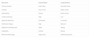 Detailed Comparison: Internal Email vs Looply (Teams)