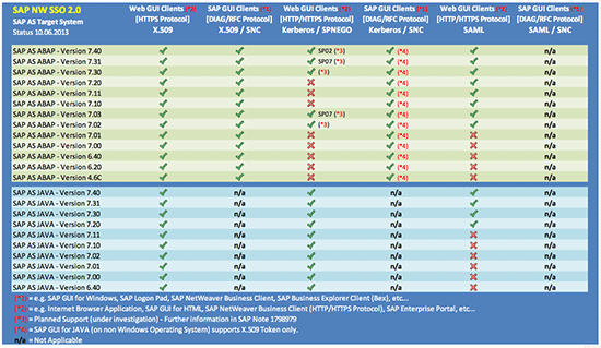 SAP platform compatibility matrix for SSO options (source: SAP)