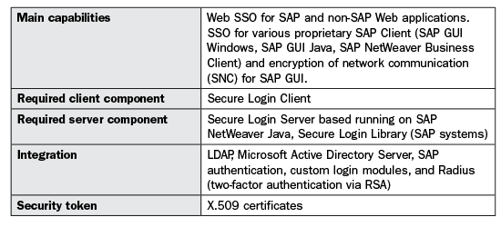 X.509 certificates are based on a public standard and are widely supported by SAP and non-SAP applications (Table 4). Secure Login Client integrates in this scenario with the client certificate store and proprietary SAP clients. Furthermore, Secure Login Client connects to the Secure Login Server, which provides out-of-the-box, short-living X.509 certificates to the client to authenticate against various user interfaces and related back-end systems. It also provides many ways to integrate third-party authentication. Most organizations use the integration with Microsoft Active Directory Server (Kerberos authentication).