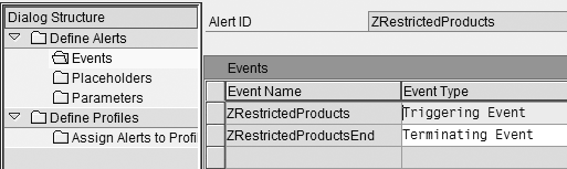 The events that trigger the display of alerts are limited to those that the SAP system defines, such as BPConfirmed or InteractionEnded. More often than not, CRM implementation teams run into requirements for alerts for which no standard event exists. In this case, you need to create a custom event to trigger an alert.