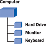 Typical BOM for a computer with a main item (computer) consisting of components (hard drive, monitor, and keyboard)