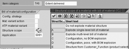 The Structural scope indicator defined in the item category controls whether the BOM is exploded or not, and to what extent (Figure 6).