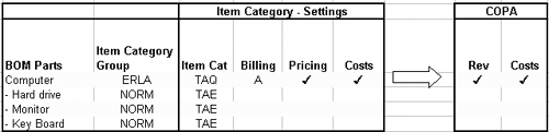 Now you see how SD item categories, including relationships of higher- and lower-level item categories, influence the flow of revenues and costs data to FI. With the help of pre-defined item category groups (ERLA or LUMF) and item categories, you are able to view profitability in CO-PA at both the main-item and components levels.