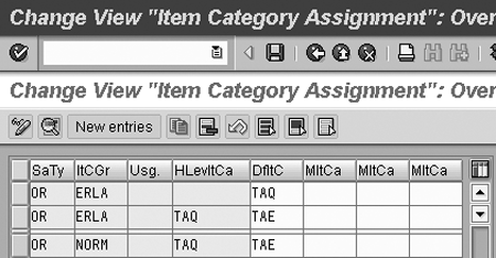 Figure 5 shows allowed item categories for a standard order type (OR) and item category group ERLA (category group for items sold as one unit).