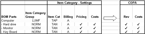 In this case, you want only the main item to be posted to FI with revenues and costs of the main computer. In sales-order processing, the components act just for data-entry help and are not posted to FI.