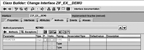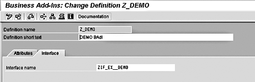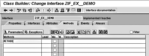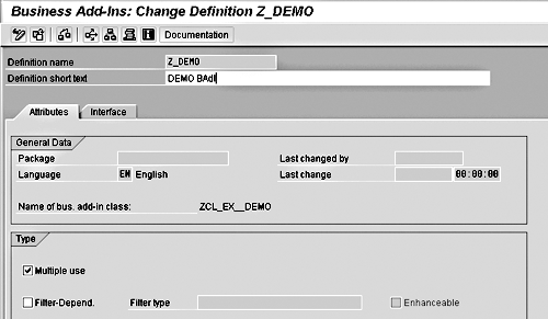 If you are creating your own BAdI, BW proposes an interface name. This name always consists of the components ZIF_EX_[definition name without the first letter]. If you double-click on the interface name or method, you get to the interface definition.