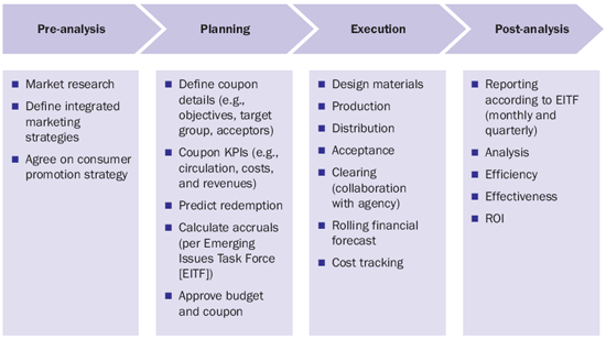 The coupon process consists of four stages: pre-analysis, planning, execution, and post-analysis (Figure 1). I will focus on the planning stage, which is where you perform most of the Coupon Management tasks.