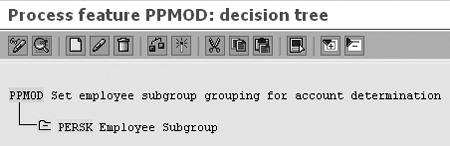 In addition to the procedure outlined in step 2, you may also assign the employee grouping for account determination with employee subgroup (feature PPMOD) through the features transaction PE03.
