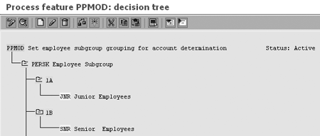 Select the PERSK node and click the create icon. Enter the employee subgroups (1A and 1B) in the Values column and click the transfer icon. You then see a screen similar to the one shown in Figure 4.