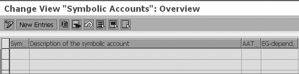 Click the New Entries button in Figure 6 to enable the entries columns. Create and define the symbolic account by specifying the symbolic account code, description, type, and employee group dependency flag by typing in the following values shown in Figure 7: