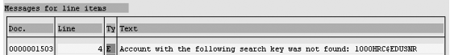Why did the third payroll period post to the G/L account fail? The posting driver program tried to post an amount using an unavailable search key. When you examine the search key name, 1000HRC$EDUSNR, you find the symbolic account $EDU and group SNR at the end of the name. It refers to the deleted symbolic account assignment.